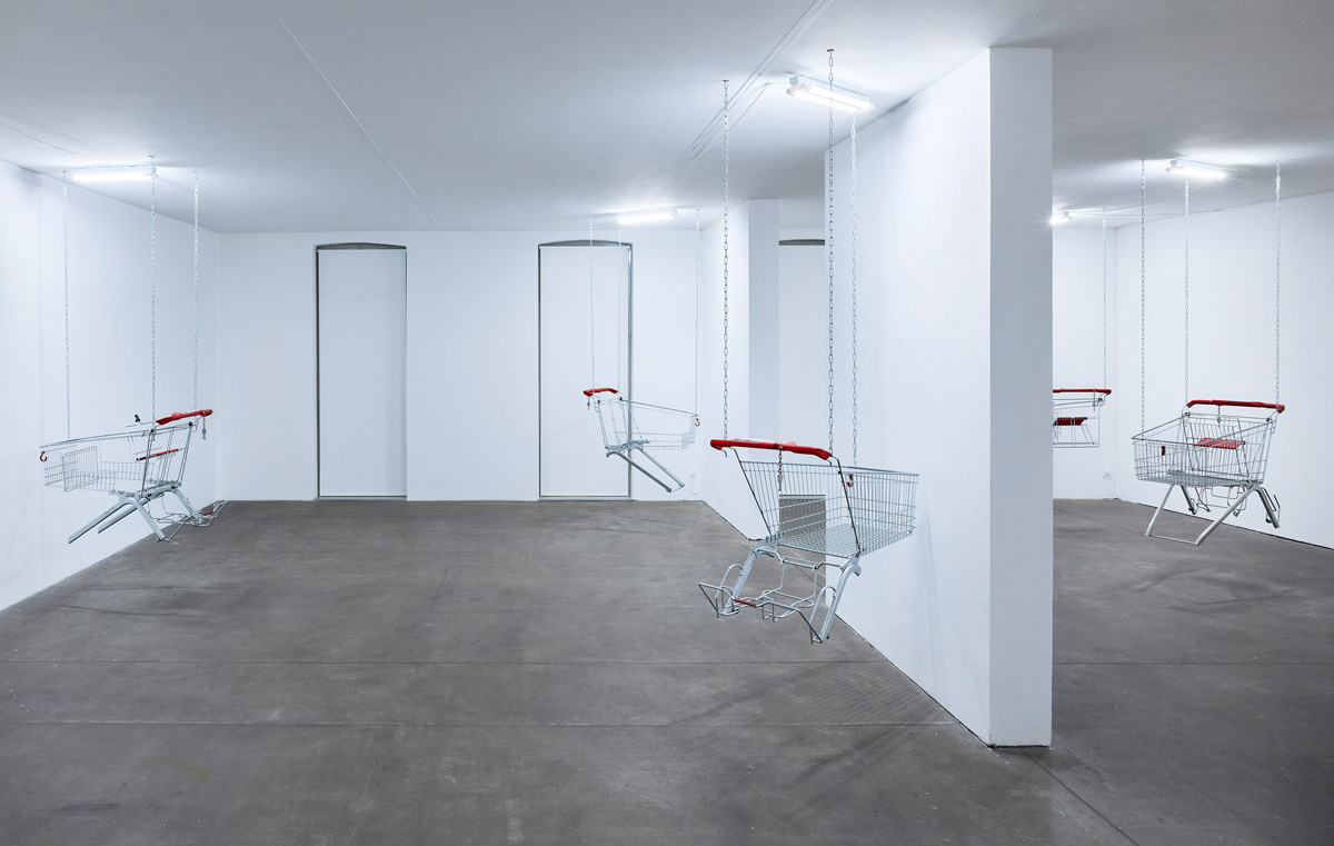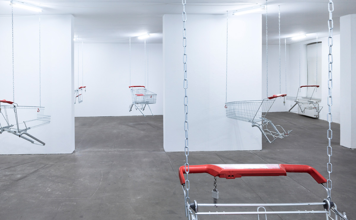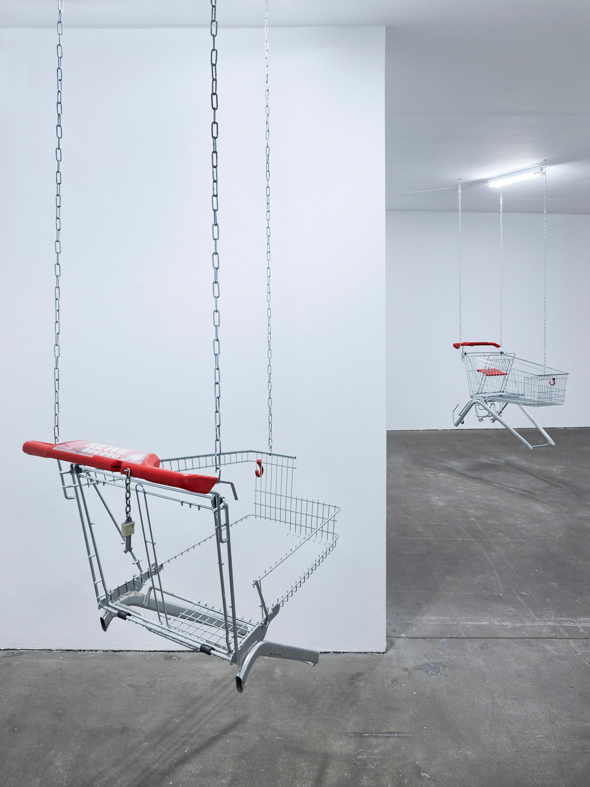 shopping carts, chains, led fluorescent tubephoto: Roman Mensing, artdoc.de